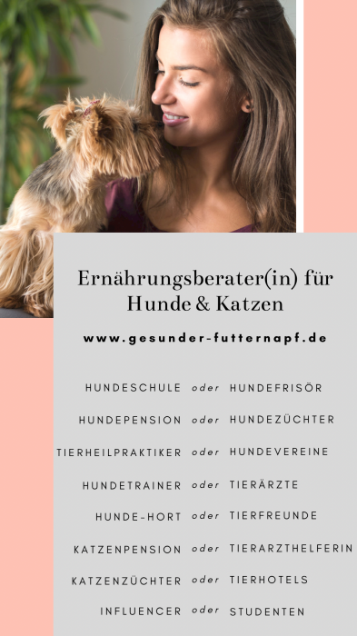 - kostenlose Ausbildung zum zertifizierten Ernährungsberater für Hunde & Katzen möglich